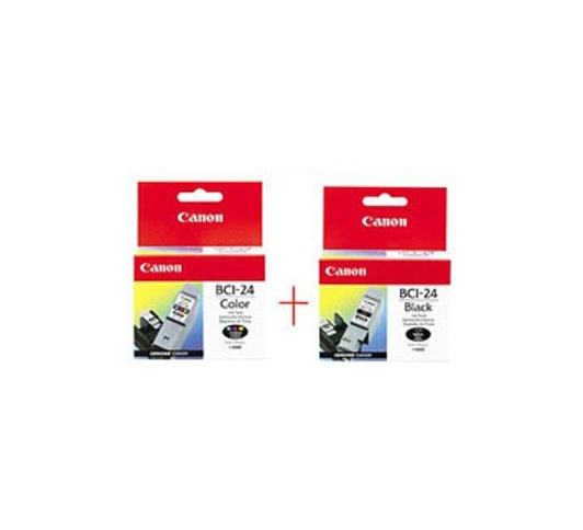 Pack de 2 cartouches jet d'encre CANON d'origine, BCI-24BK +BCI-24CL