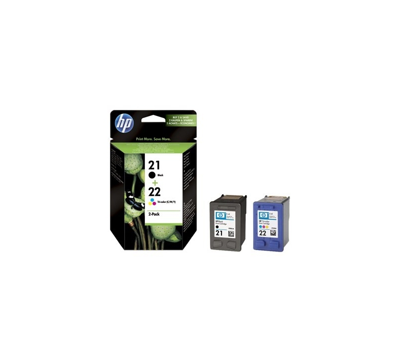 Pack de 2 cartouches jet d'encre HP d'origine, N°21 + 22, 190+165 pages